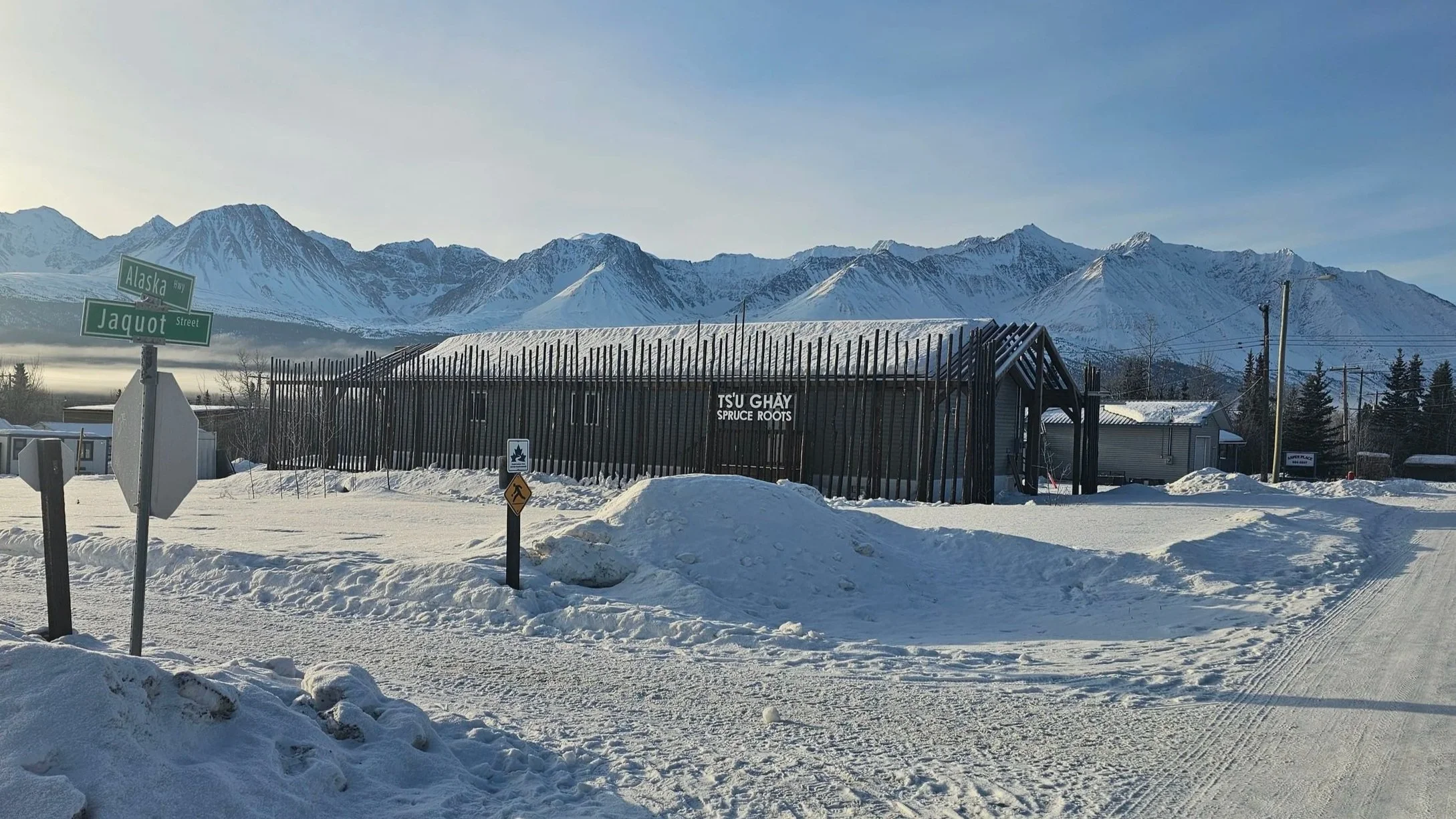 Photo caption: Ts’u Ghāy Sewing Studio under construction (January 2026), located at 199 Alaska HIghway at the corner of Jaquot Street and the Alaska Highway